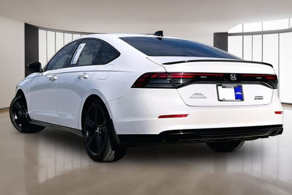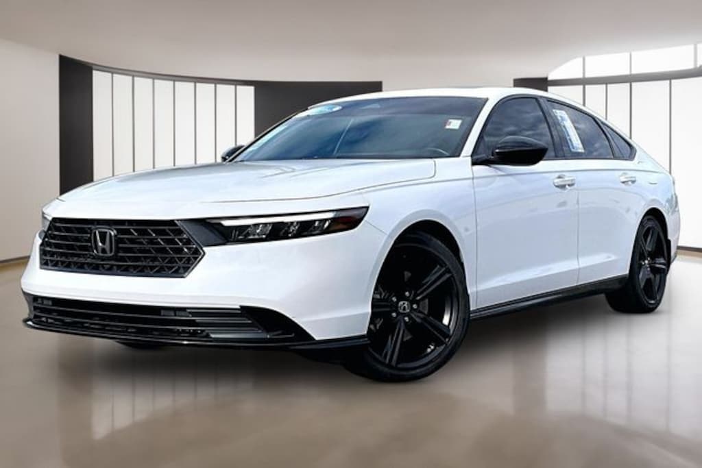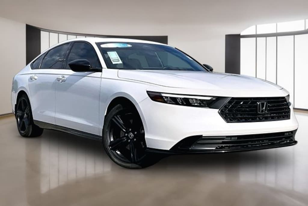 The 2023 Honda Accord Hybrid SportL delivers the perfect blend of sporty styling, premium comfort, and outstanding hybrid efficiencymaking it a smart choice for drivers across Middle Tennessee. Powered by a responsive 204-horsepower hybrid powertrain paired with an electronic CVT, the Accord Hybrid Sport-L offers smooth acceleration and impressive fuel economy of up to 46 MPG city and 41 MPG highway, helping you save on fuel during daily commutes around Murfreesboro, Nashville, and surrounding areas. Honda designed the Sport-L trim with a sleek, aggressive look featuring 19-inch matte-black alloy wheels, a gloss-black rear spoiler, and a sporty rear diffuser, while the interior adds comfort with perforated leather-trimmed seating, heated front seats, and a large 12.3-inch touchscreen with wireless Apple CarPlay and Android Auto integration. Combining bold design, advanced safety technology, and excellent fuel efficiency, the 2023 Accord Hybrid Sport-L stands out as a stylish and practical sedan for Middle TN drivers seeking modern technology and everyday reliability.