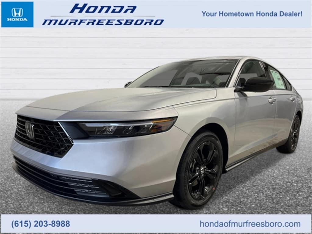 The 2025 Honda Accord SE is the ideal sedan for drivers in Middle Tennessee, offering a perfect balance of style, performance, and advanced technology. Powered by a turbocharged 1.5-liter engine, the Accord SE delivers a smooth and responsive driving experience while maintaining excellent fuel efficiency for both Nashville commutes and weekend trips to Murfreesboro. Inside, enjoy a refined interior featuring premium cloth seating, a 7-inch touchscreen with Apple CarPlay and Android Auto integration, and an easy-to-use infotainment system. The Accord SE also comes with Honda Sensing safety features, ensuring peace of mind on every journey. With its sleek design, spacious cabin, and cutting-edge tech, the 2025 Honda Accord SE is the perfect choice for those seeking a stylish and reliable sedan in Middle Tennessee. Visit Honda of Murfreesboro today to test drive the 2025 Honda Accord SE and experience it for yourself!