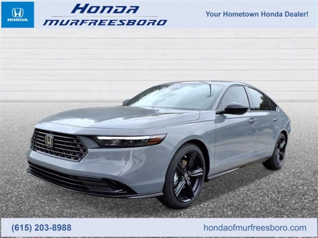 The 2026 Honda Accord Hybrid Sport-L delivers a refined blend of sporty design, premium comfort, and outstanding fuel efficiency, making it an ideal midsize sedan for drivers across Middle Tennessee. Perfect for daily commuting between Murfreesboro, Nashville, Franklin, and Smyrna, this stylish hybrid sedan is powered by an advanced Honda two-motor hybrid system that provides smooth, responsive performance while helping reduce fuel stops. The Sport-L trim adds upscale touches like leather-trimmed seating, a power drivers seat, bold exterior styling, and sleek alloy wheels for a more athletic look on Tennessee roads. Inside, a modern cabin features a large touchscreen display with Apple CarPlay and Android Auto, a digital instrument cluster, and generous passenger space for comfortable travel. Standard Honda Sensing safety and driver-assist technologies help add confidence with features such as Lane Keeping Assist and Adaptive Cruise Control. For shoppers searching for a fuel-efficient hybrid sedan in Murfreesboro, the 2026 Accord Hybrid Sport-L offers the perfect mix of technology, comfort, and sporty sophistication for life in Middle TN.
