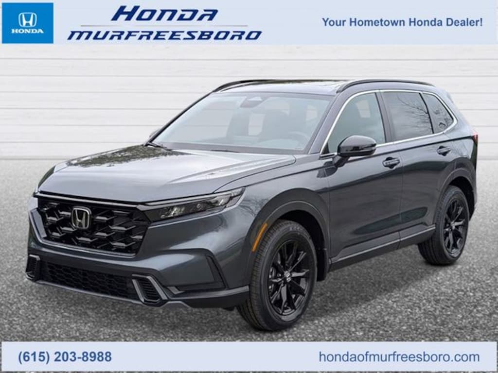 Experience the perfect combination of style, performance, and efficiency with the 2026 Honda CR-V Hybrid Sport, available now at Honda of Murfreesboro in Middle Tennessee. This sleek and sporty hybrid SUV delivers an impressive 204 horsepower and up to 43 MPG in the city, making it an ideal choice for eco-conscious drivers commuting around Nashville, Murfreesboro, and Smyrna. The CR-V Hybrid Sport stands out with 19-inch gloss black wheels, bold exterior accents, and a refined interior featuring a 7-inch digital instrument display, sporty cloth seats with orange stitching, and a 7-inch touchscreen with Apple CarPlay and Android Auto. Equipped with the full Honda Sensing suite of safety technologies, including lane-keeping assist and collision mitigation braking, the 2026 CR-V Hybrid Sport ensures confidence and peace of mind on every drive. Visit Honda of Murfreesboro today to test drive this fuel-efficient SUV thats perfect for life in Middle TN!