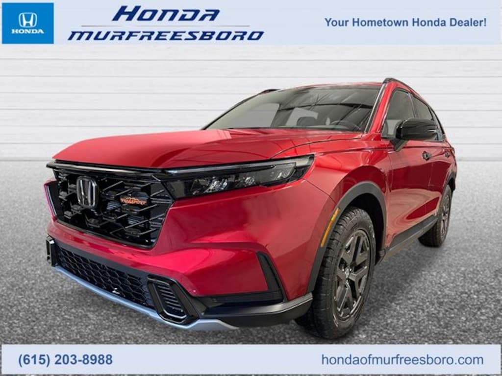 The 2026 Honda CR-V Hybrid TrailSport is built for adventure and efficiency, making it the perfect SUV for active drivers across Middle Tennessee, now available at Honda of Murfreesboro. Designed to handle both city commutes and off-road getaways around Murfreesboro, Nashville, and beyond, the CR-V Hybrid TrailSport features rugged styling, all-terrain tires, and Hondas advanced Real Time AWD system with Intelligent Control System for confidence on any surface. Under the hood, its hybrid powertrain delivers an impressive balance of 204 horsepower and exceptional fuel efficiency, while the interior offers leather-trimmed seats, wireless Apple CarPlay and Android Auto, and a power moonroof for premium comfort and connectivity. With Honda Sensing safety features standard, you'll enjoy peace of mind wherever your journey takes you. Visit Honda of Murfreesboro today to explore the 2026 CR-V Hybrid TrailSport, your perfect companion for adventure in Middle TN.